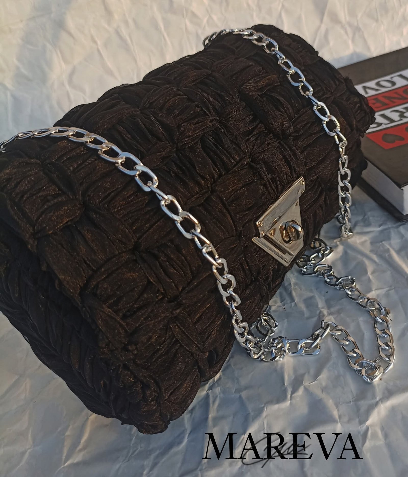 شنطة أورجانزا سوداء حجم كبير ، مناسبة للسهرات متاح منها ألوان ومقاسات