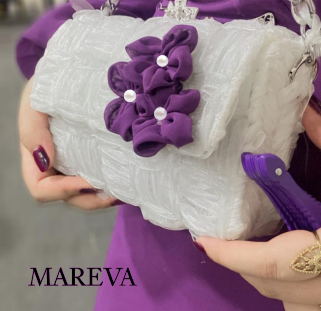 شنطة كنفا مصنوعة بخيوط الاورجانزا اللامعة عرض 19 سم مزودة ببعض الورود مطابقة للون الفستان الشنطة متاحة بدونها و متوفرة بمقاسات وألوان مختلفة حسب الطلب
