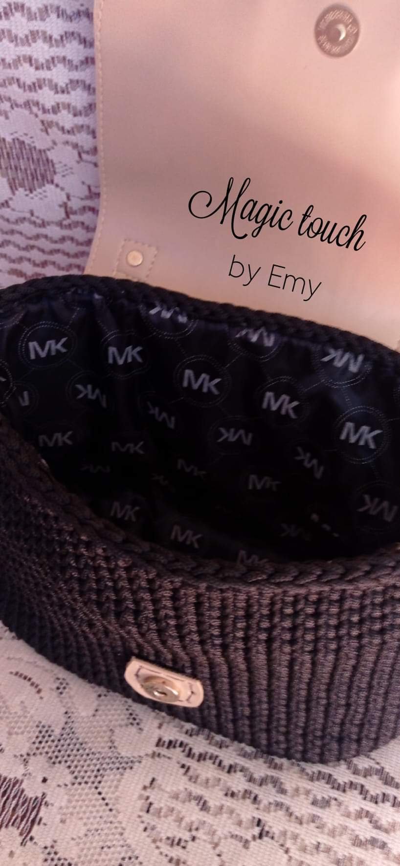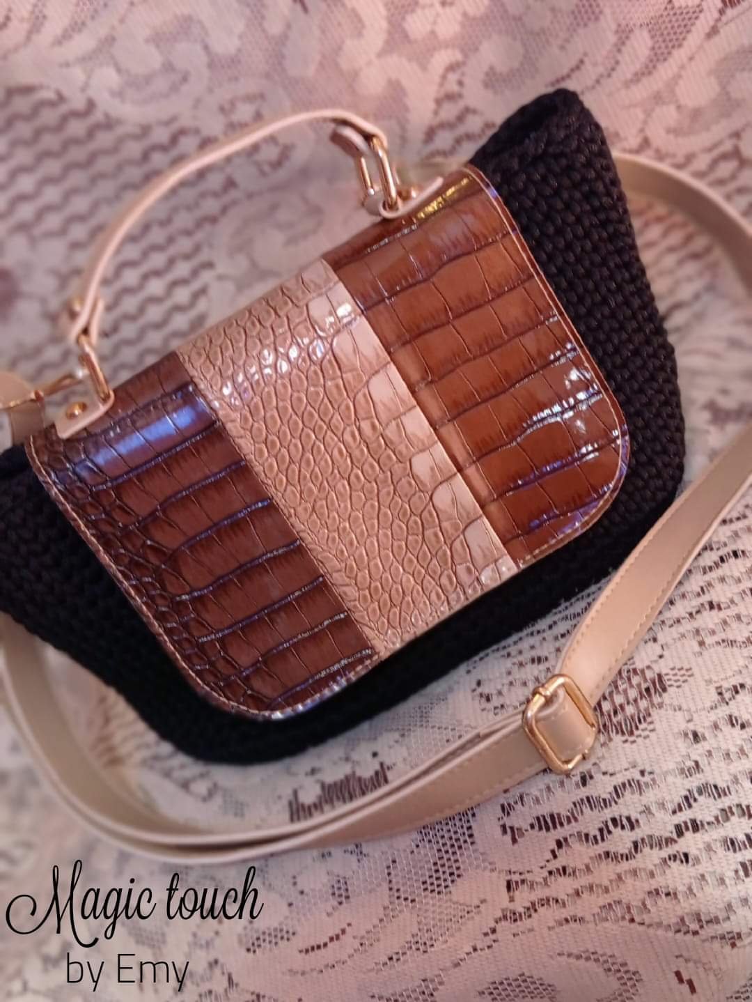 شنطة هاند ميد كروشيه مع تداخل الجلد قطعه مميزة