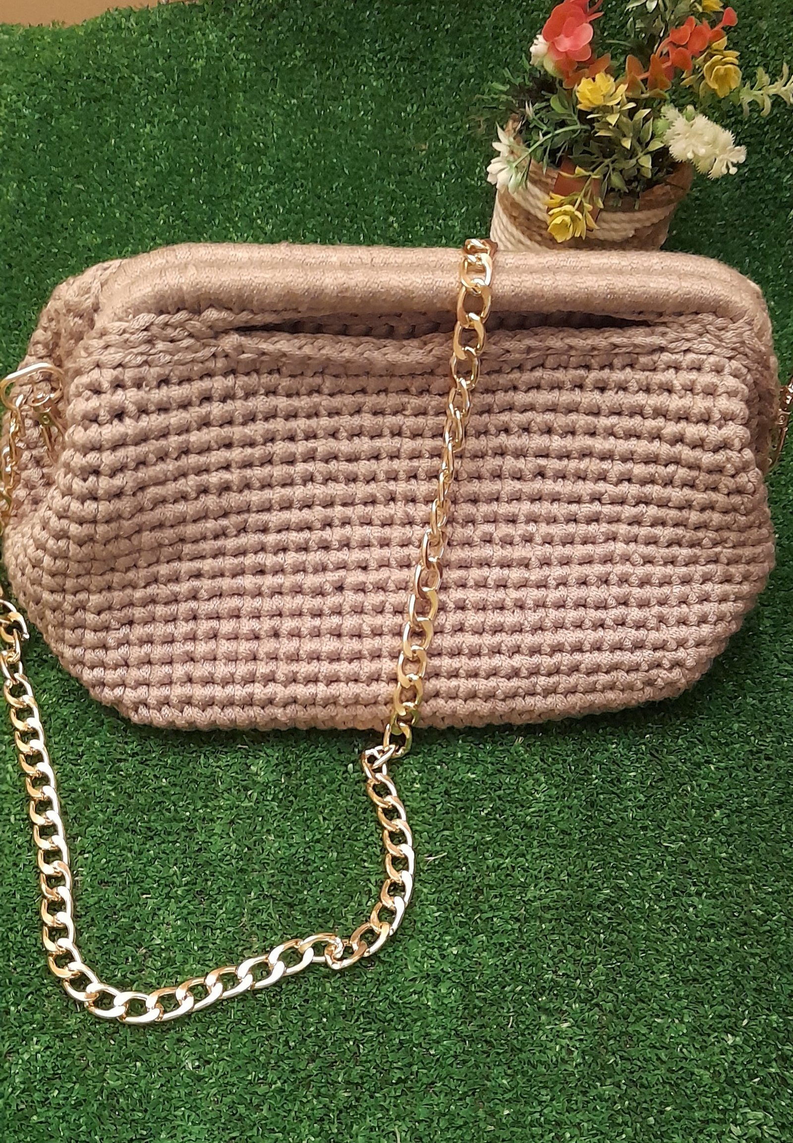 شنطة كروشيه أنيقة مصنوعة يدويًا، مزودة بفريم سحري لإغلاق آمن وسهل، قطعة عملية وفنية لمظهرك اليومي