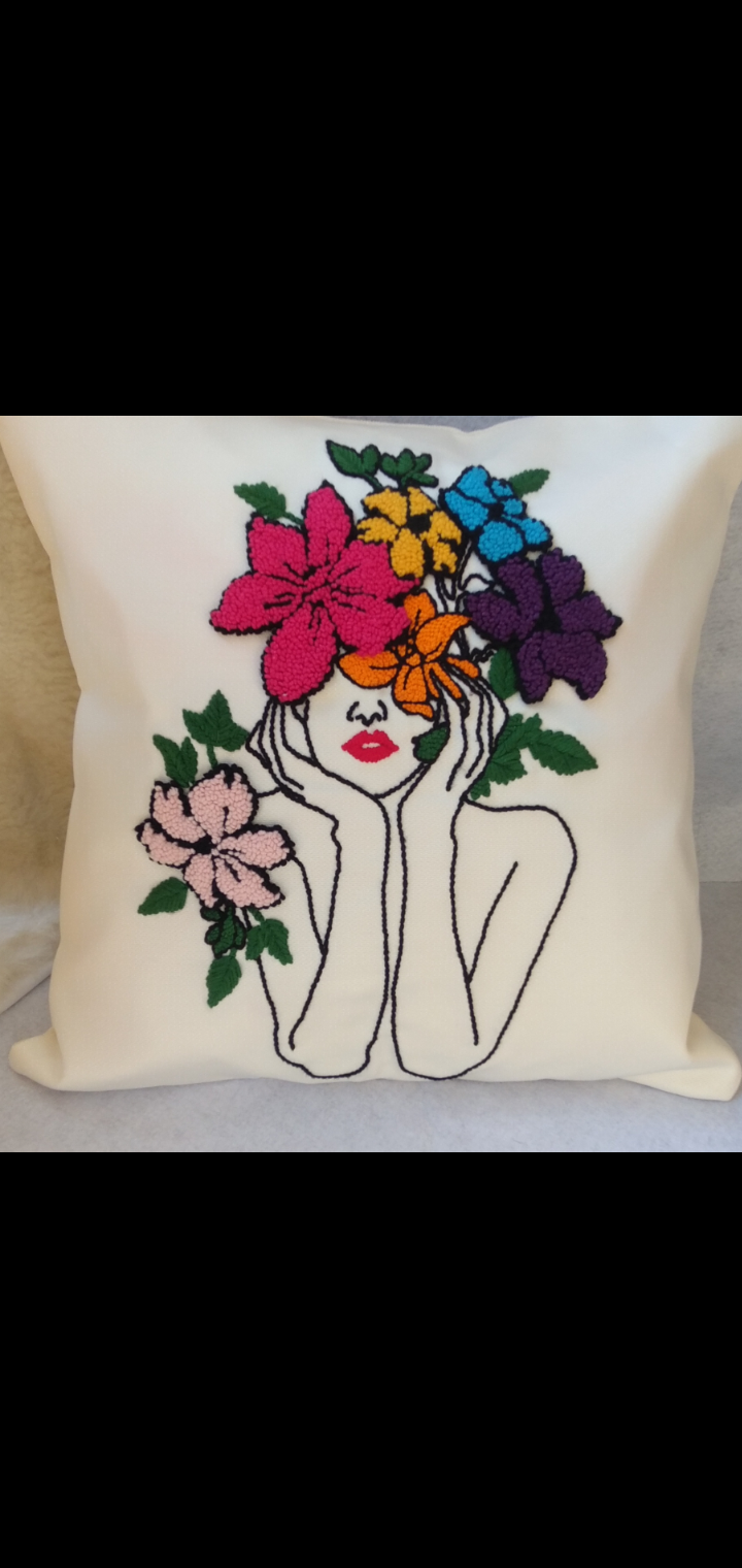 كوشن مقاس 45×45 مصنوع يدوياً بإبرة النفاش، كل غرزة فيه بتحكي قصة حب وشغف. تصميم فريد يضيف لمسة دفء وجمال لأي ركن في بيتك، ويعبر عن ذوقك الراقي في اختيار التفاصيل. مثالي كقطعة ديكور مميزة أو هدية فاخرة تعبر عن الاهتمام.