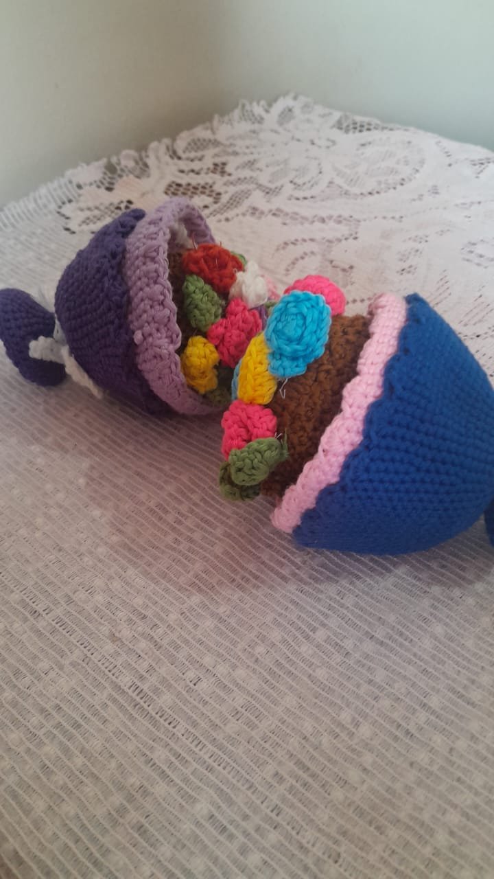 عروسه كروشيه هاند ميد بقلب بوكيه ورد