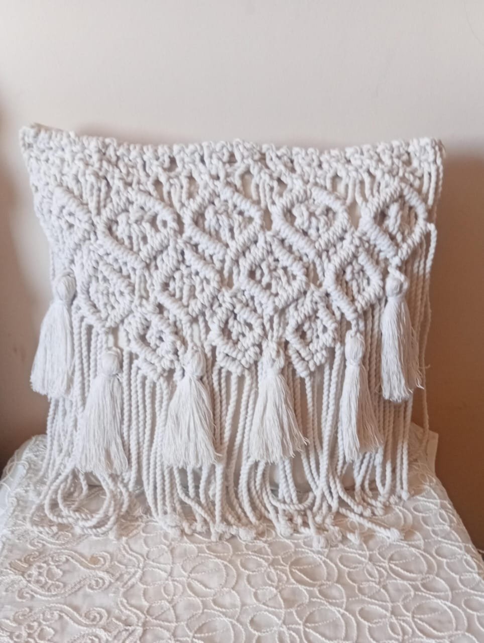 كوشن مكرميه ٤٥ف٤٥ قماش دك وخيوط مكرميه قطن