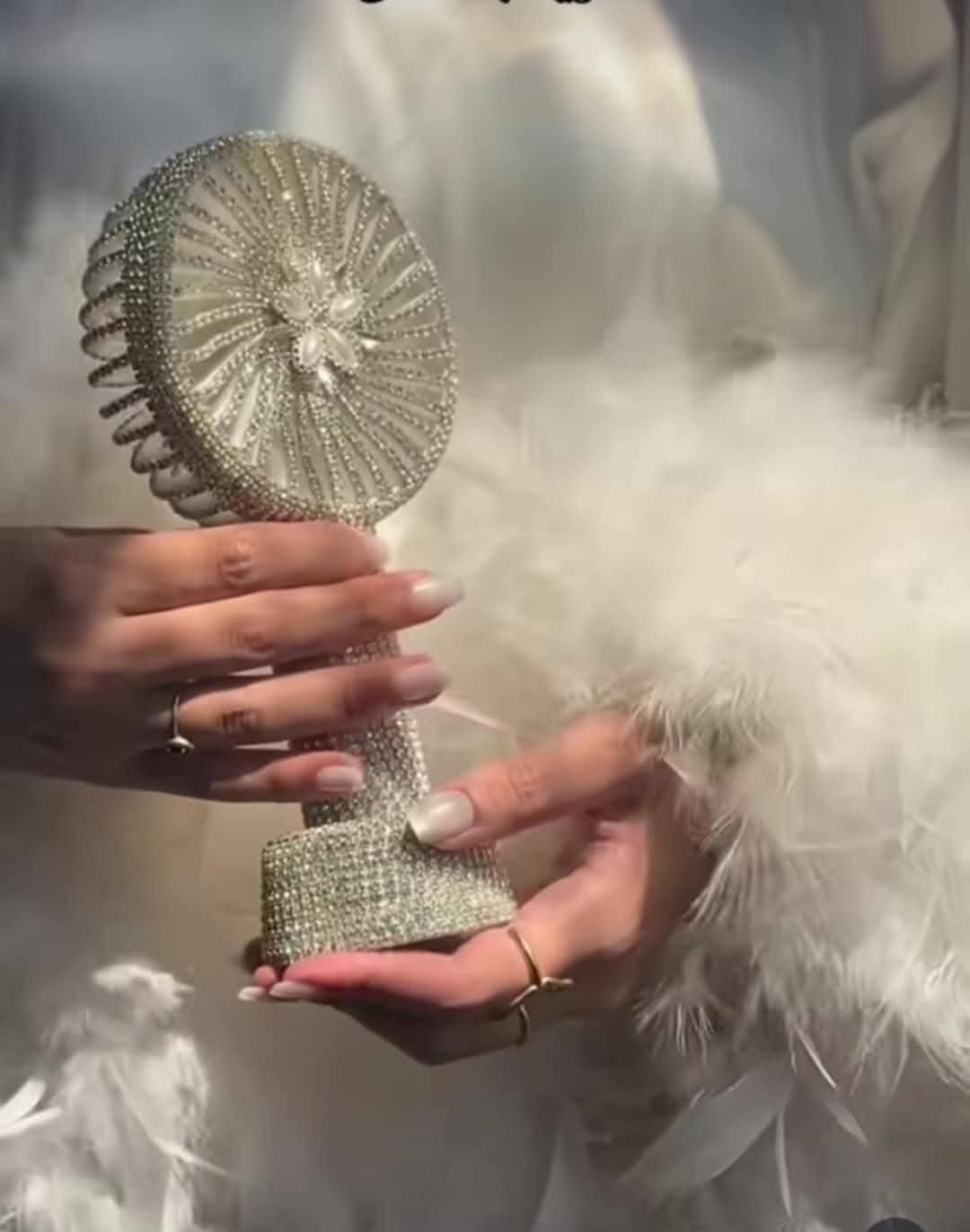 مروحه  عروسه هاندميد مرصعه الكريستال ،لاطلاله فاخره يوم زفافك ،مثاليه كهدايا