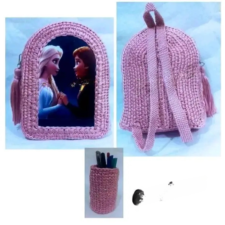 شنطة مدرسية كروشيه ومقلمة كروشيه