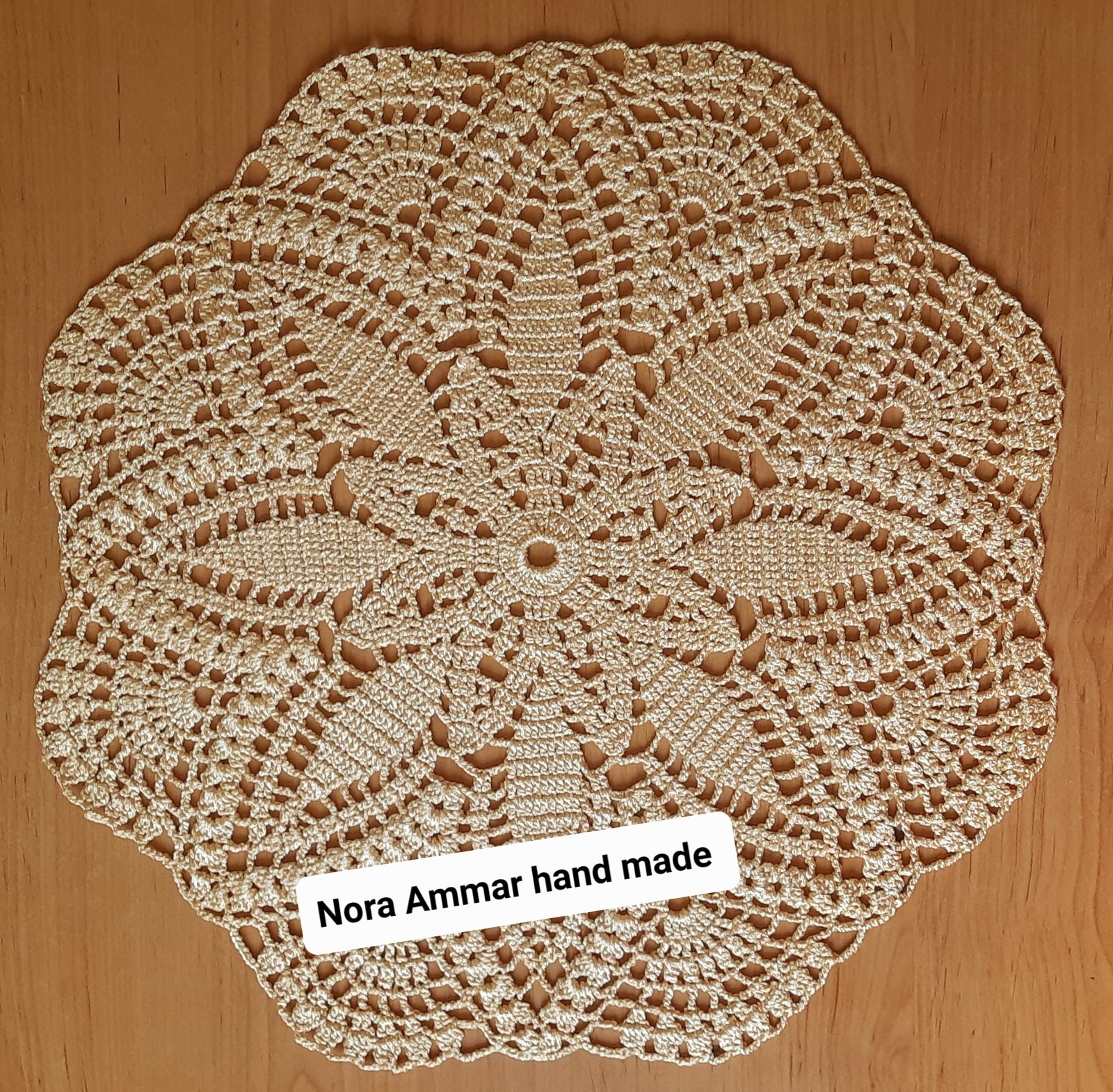 بلون ذهبي أنيق ومقاس ٥٠سم يضيف لمسة راقية وجذابة لديكور منزلك. مصنوع من خيوط الحرير اللامعة التي تمنح مظهراً فخماً يناسب كل المناسبات ويضفي على الطاولة طابعاً مميزاً مليئاً بالأناقة. مفرش ترابيزه كروشيه حرير سلسلة يجمع بين الجودة العالية والتصميم الكلاسيكي ليكون قطعة ديكورية فريدة تزين بيتك بذوق رفيع.