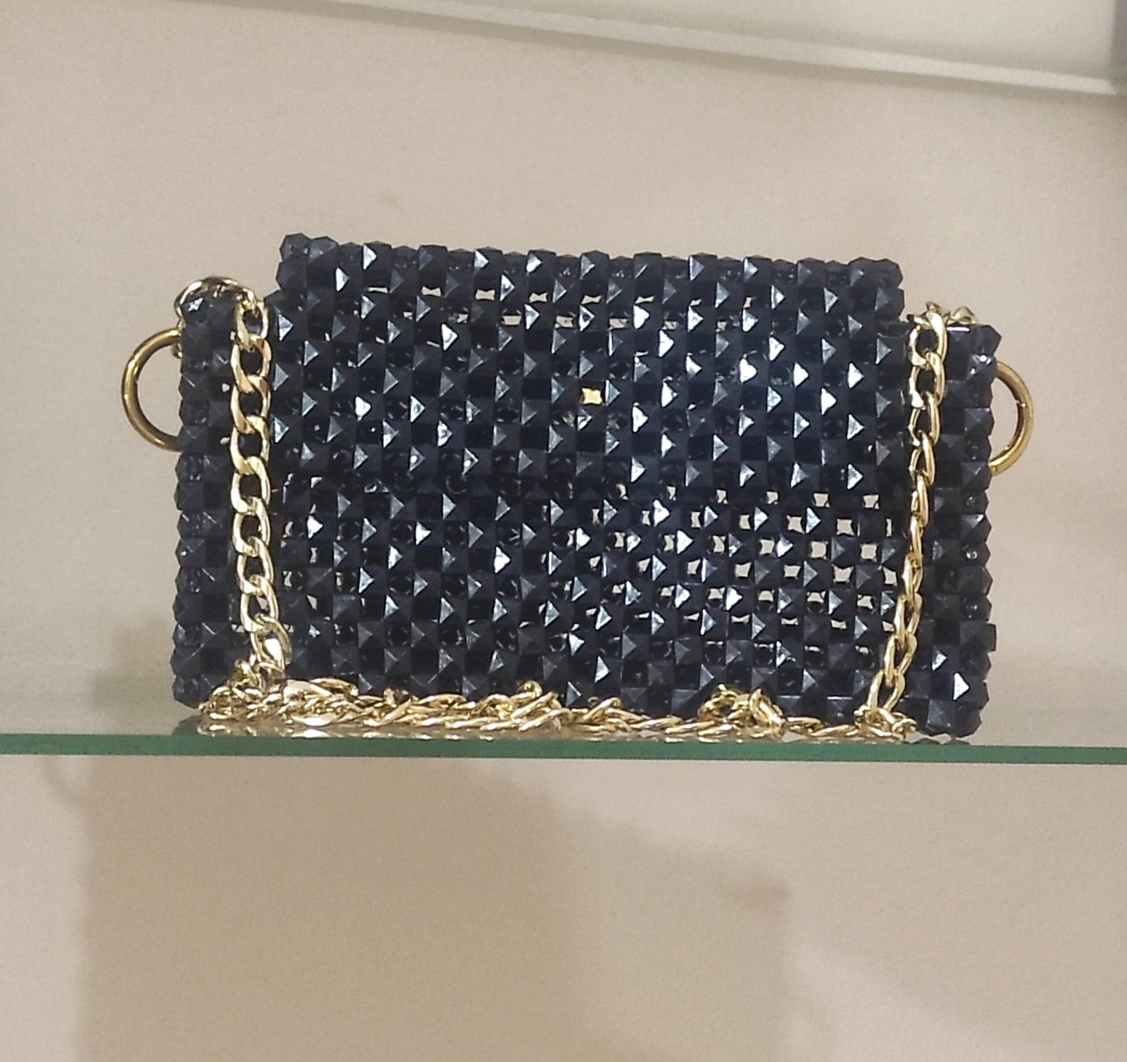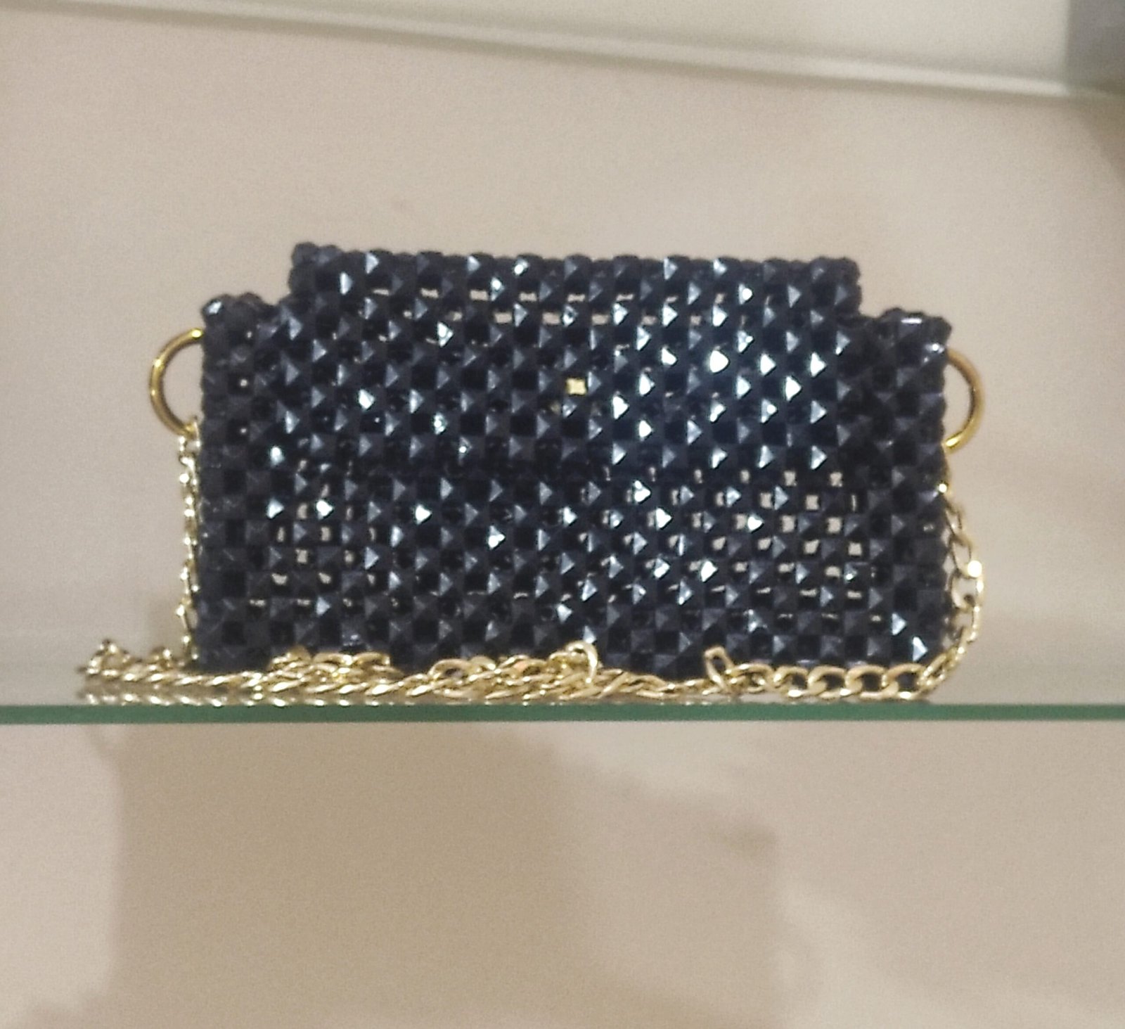 شنطة مصممة من خرز الكريستال اللامع، بتفاصيل دقيقة وتصميم عصري يخطف الأنظار. مثالية للسهرات والمناسبات الخاصة، وتضفي لمسة فخامة على إطلالتك مع مساحة تكفي مستلزماتك الأساسية بأناقة.