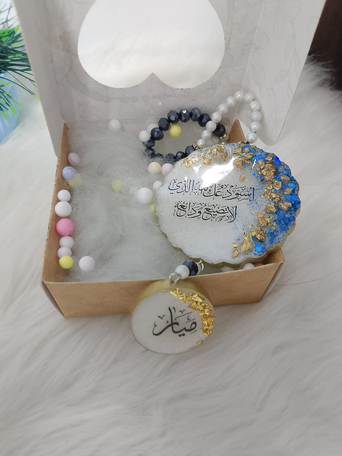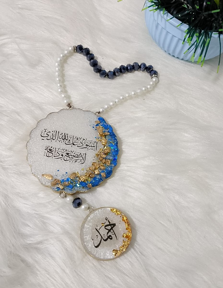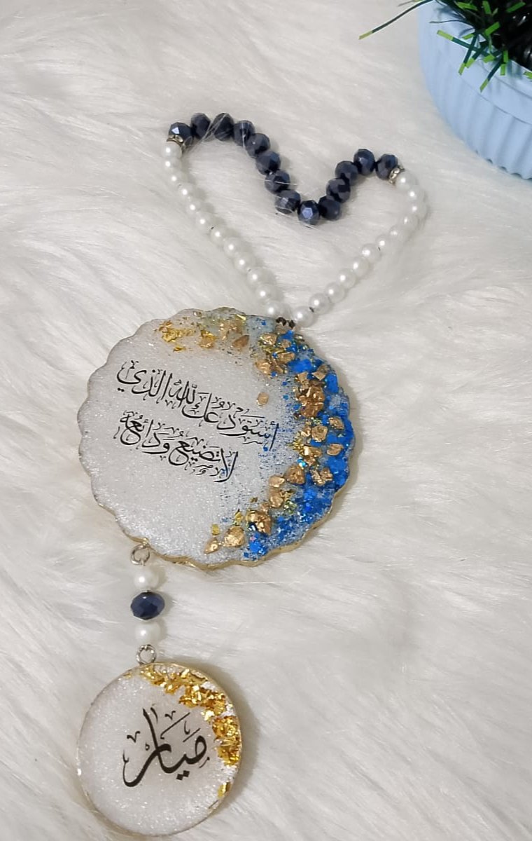 دلاية عربية أنيقة من الريزن، مُزينة بالأحجار والكلمات المميزة، قطعة فنية هاند ميد فريدة من نوعها