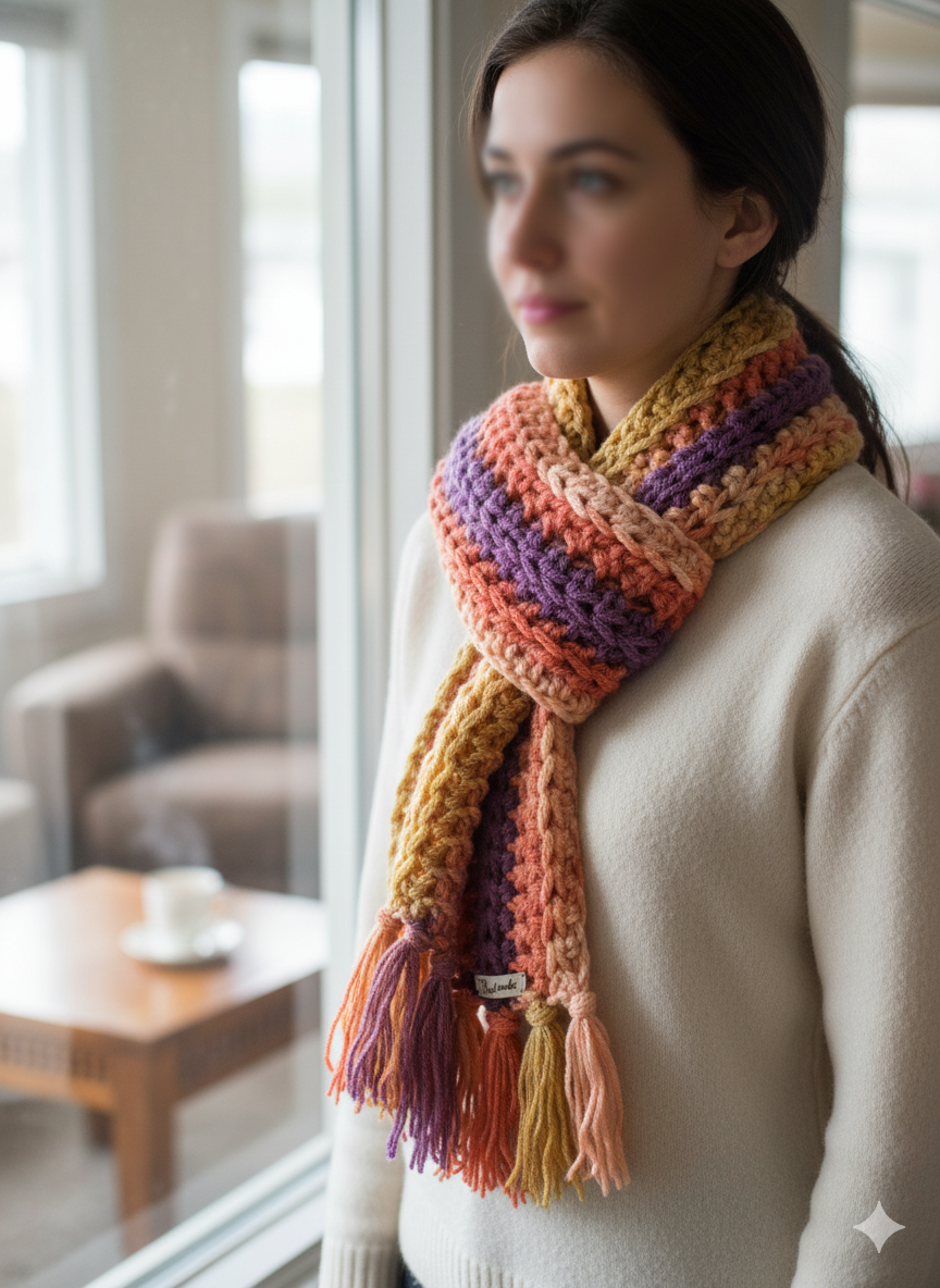 اسكارف كروشيه شتوي مصنوع يدويًا بخيوط الصوف التركي الناعم عالي الجودة.