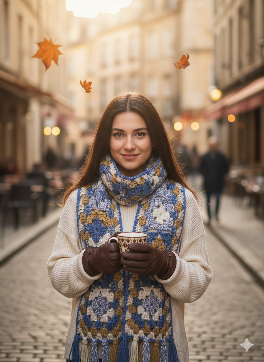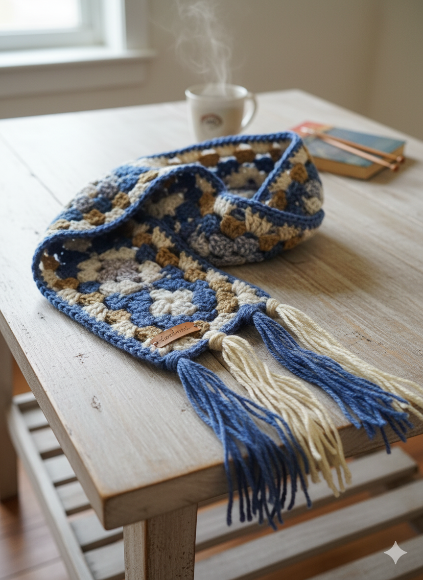 اسكارف شتوي مصنوع يدويًا بخيوط عالية الجودة ليجمع بين الدفء والأناقة.