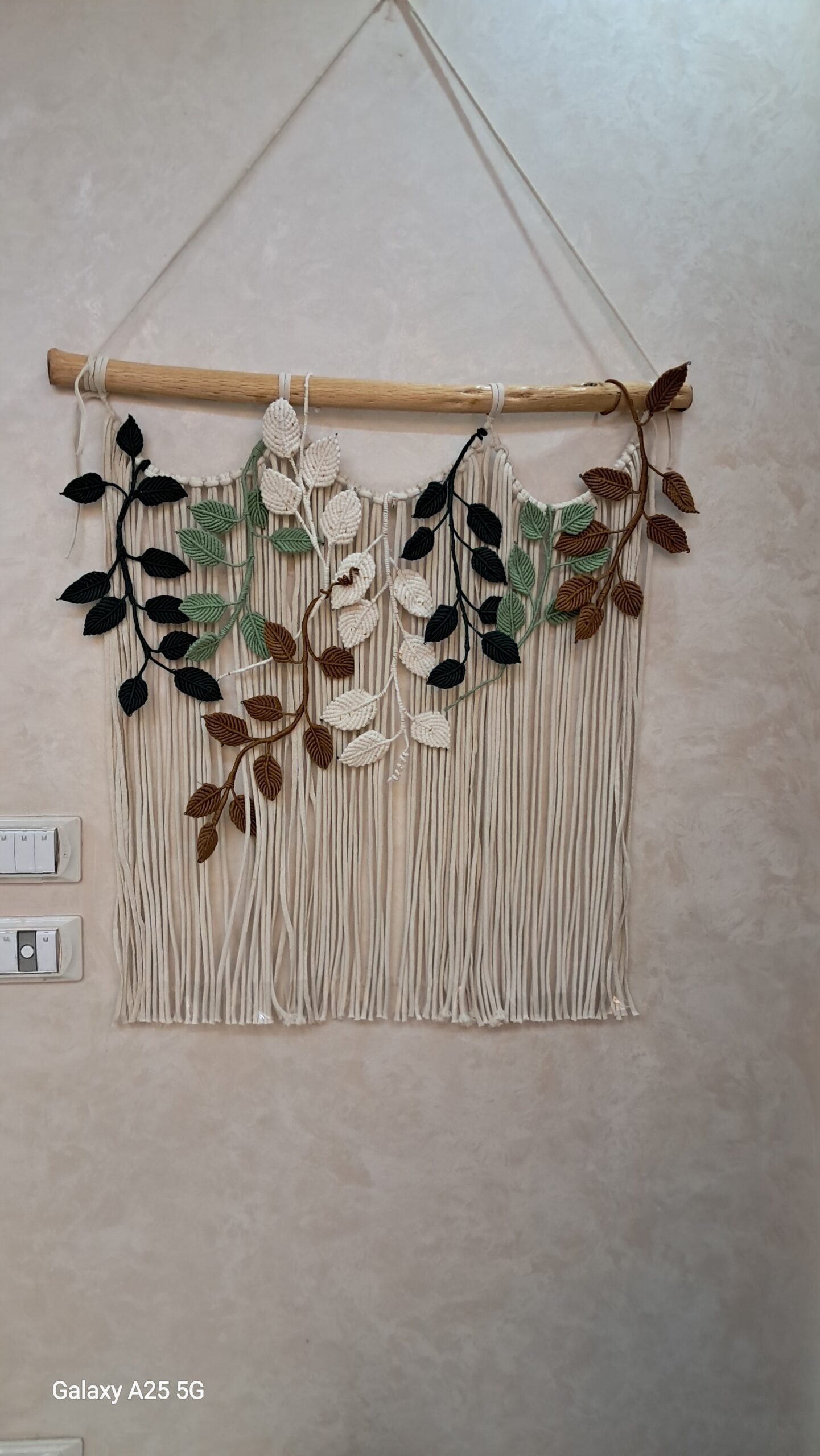 دلايه مكرميه مفعمه بالحياه بأوراق الشجر المنسوجه بالخيوط المنسدله بنعومه المليئه بالحب ❤️❤️