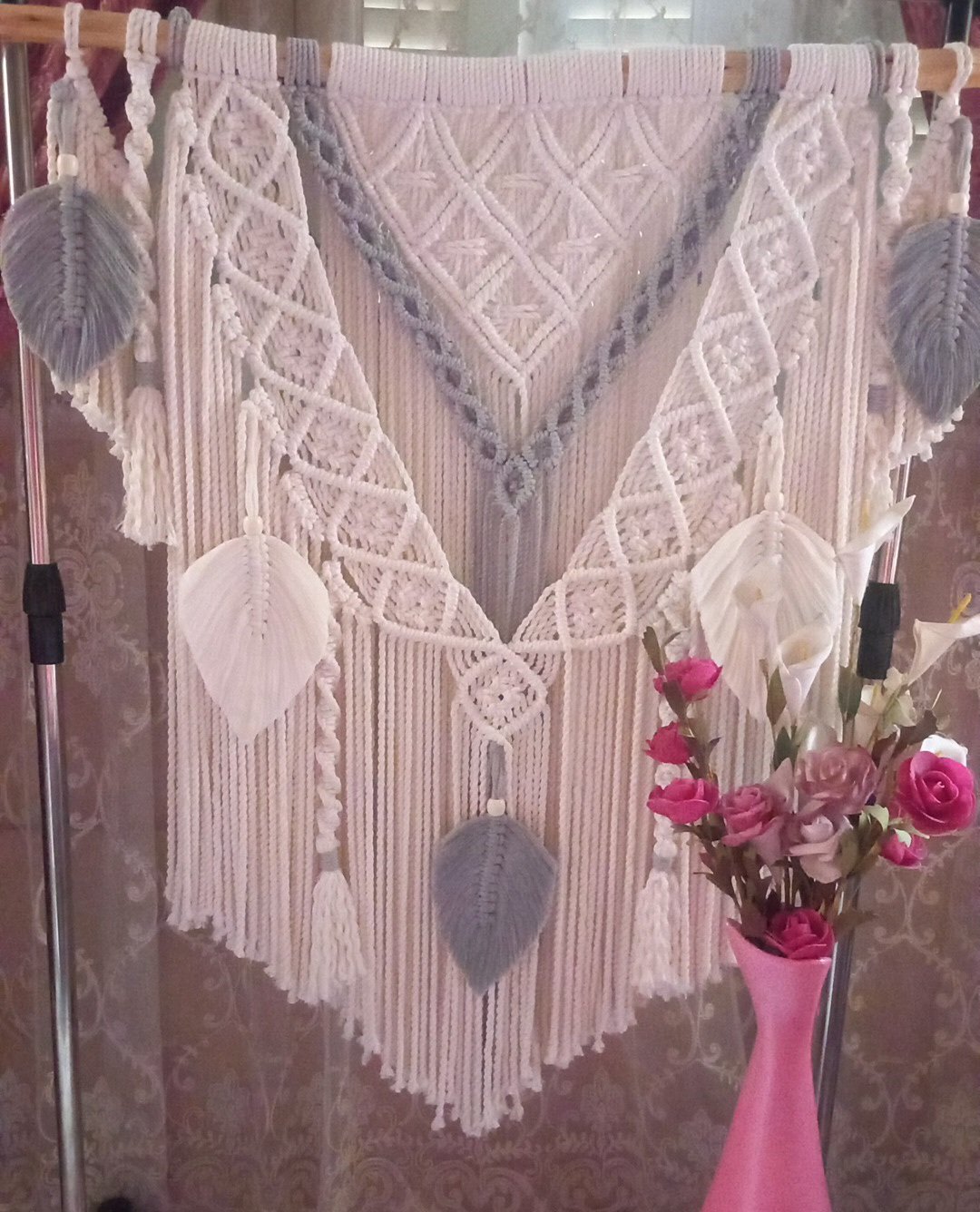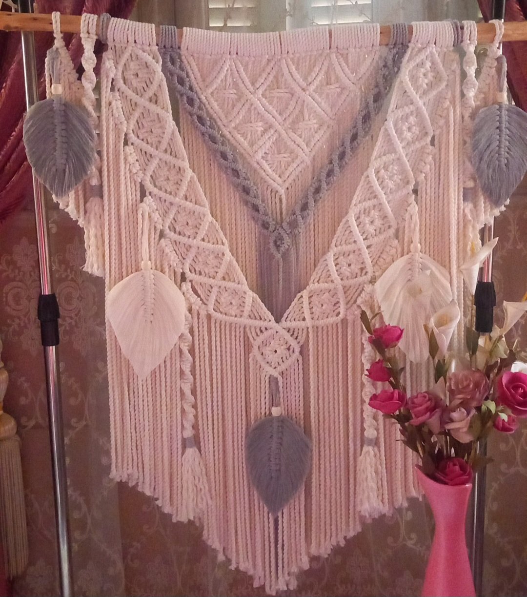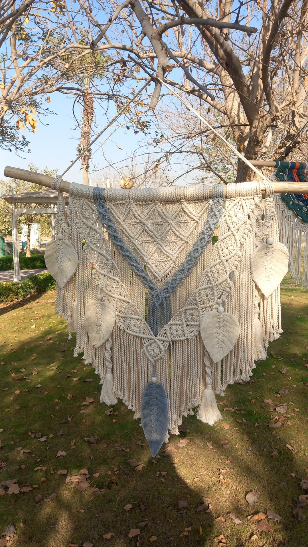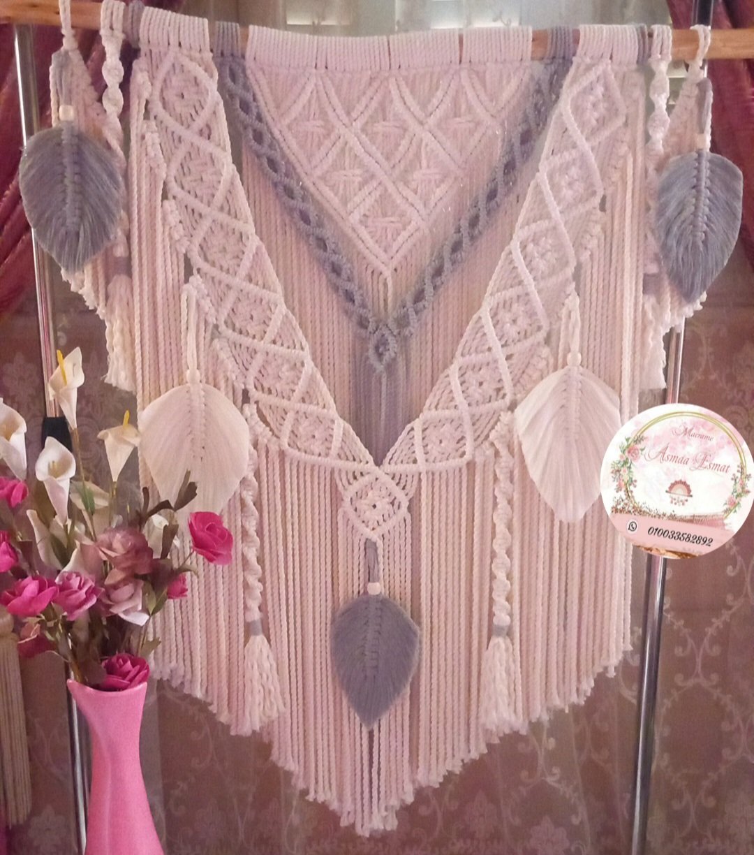 أضف لمسة فنية مميزة إلى منزلك مع الجداريه المكرميه المصنوعة بخيوط المجدول عالية الجودة.