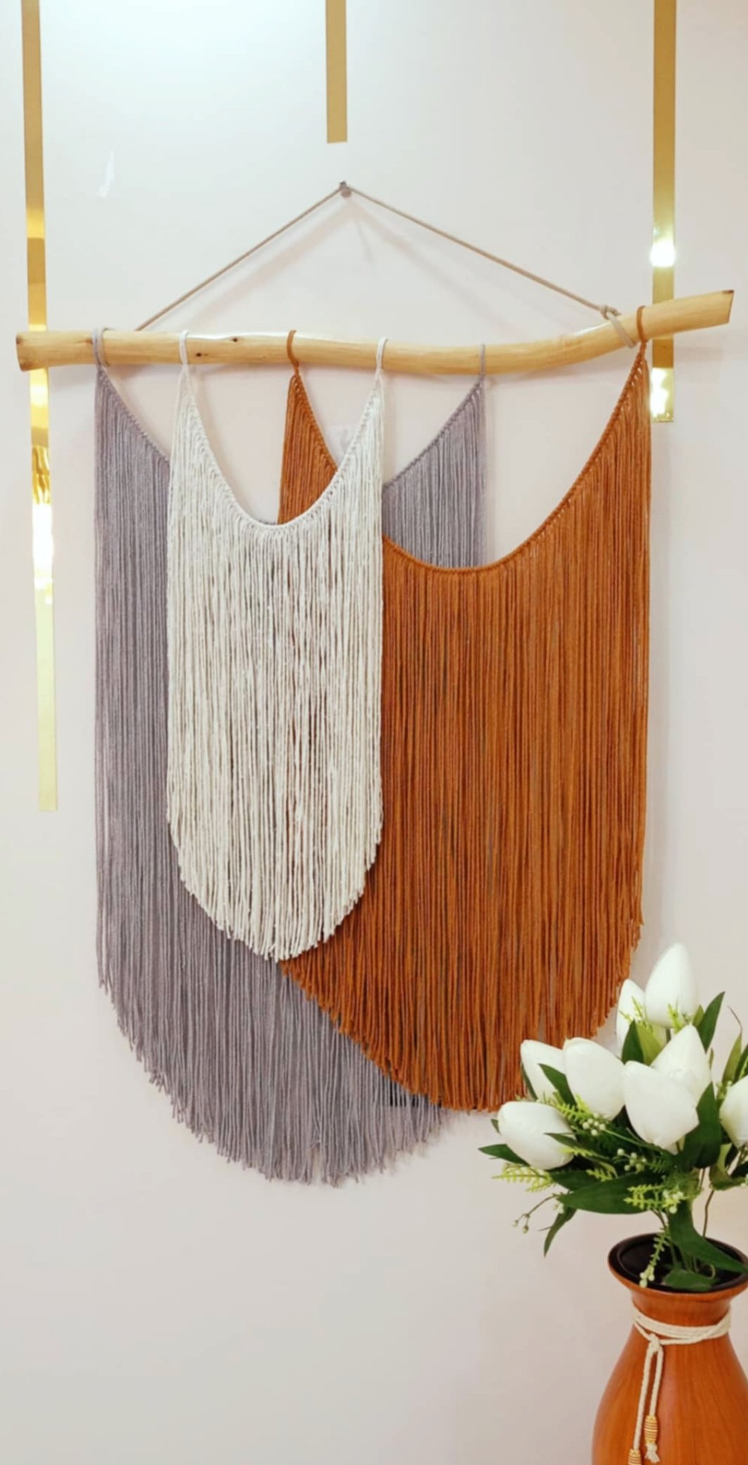 أضيفي لمسة من الأناقة والدفء إلى منزلك مع هذه المعلقة الجدارية المصنوعة بخيوط المكرمية المستوردة عالية الجودة. تصميم متقن يجمع بين البساطة والفخامة ليحول أي جدار عادي إلى لوحة فنية تنبض بالحياة والجمال. مثالية لتزيين غرفة المعيشة، غرفة النوم، أو حتى مدخل المنزل.