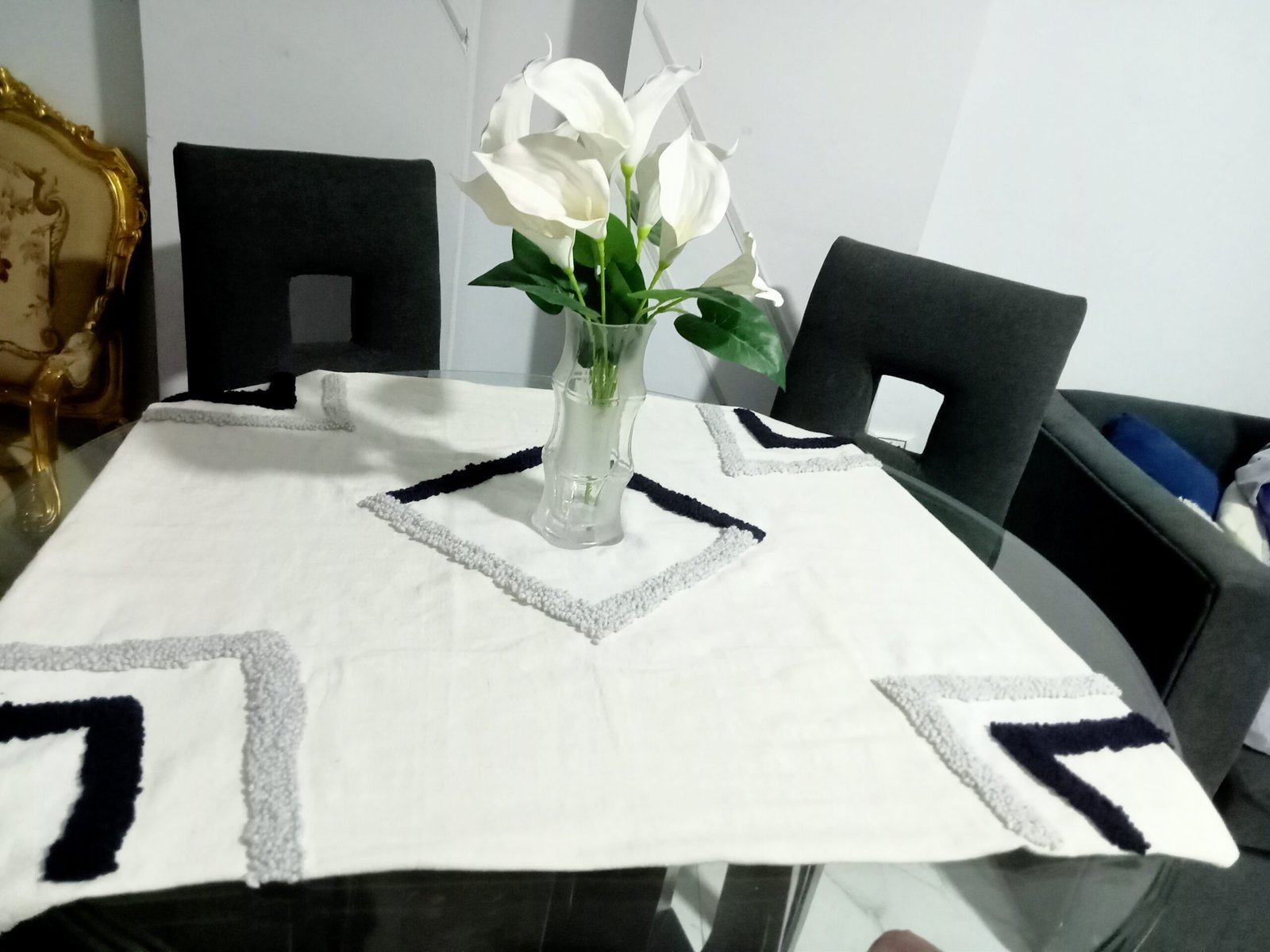يمكن تنفيذ المفرش بألوان وأحجام مختلفة حسب الطلب ليتناسب مع ديكور منزلك ويمنحك لمسة فريدة ومميزة. قطعة هاند ميد استثنائية تضيف شخصية خاصة إلى المكان وتجعله أكثر حيوية وأناقة.